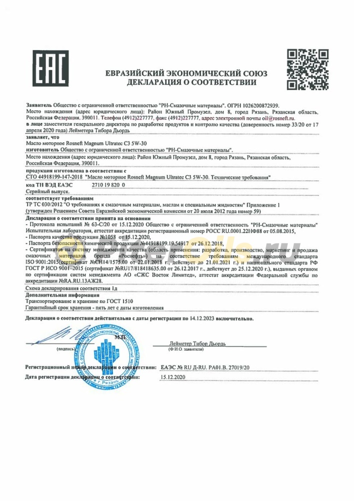 Rosneft Magnum Ultratec C3 5W-30 – всесезонное малозольное (Low SAPS) полностью синтетическое моторное масло нового поколения, продлевающее срок службы систем доочистки выхлопных газов, а также обеспечивающее надежную защиту и длительный срок службы двигателя. Полностью совместимо с системами доочистки выхлопных газов, оборудованными фильтрами сажевых частиц (DPF) и каталитическими нейтрализаторами.