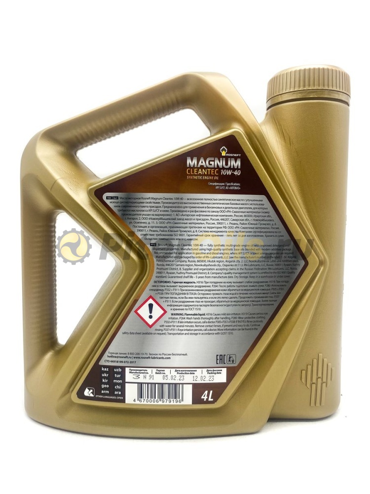 Масло моторное Rosneft Magnum Cleantec 10W-40 предназначено для применения в бензиновых и дизельных двигателях легковых автомобилей с большим пробегом, для которых требуется масла класса API SJ/CF и ниже. Рекомендуется для использования вместо масел уровня API SG/CD.