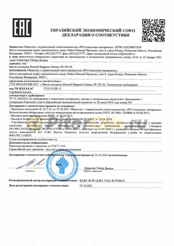 Роснефть Magnum Ultratec FE 5w30 (4л) 40816342