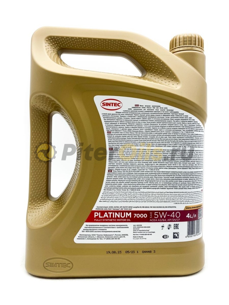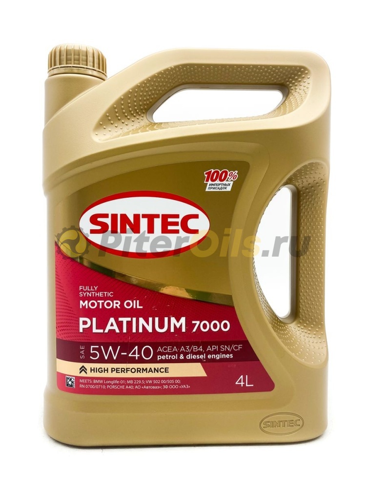 SINTEC PLATINUM SAE 5W-40, API SN/CFпроизводится из синтетических базовых масел и высокоэффективного многофункционального импортного пакета присадок от мирового лидера отрасли. Синтетические базовые масла обеспечивают отличные низкотемпературные и термоокислительныесвойства, что обеспечивает лёгкий пуск в самых суровых погодных условиях и увеличенный интервал замены масла, даже при высоких нагрузках на ДВС. Противоизносные и моюще-диспергирующие присадки последнего поколения гарантируют непревзойдённую защиту и чистоту двигателя на весь срок службы масла.