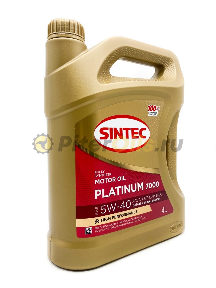 Sintec Platinum 7000 5W40 A3/B4 SN/CF (4л) 801941/600139