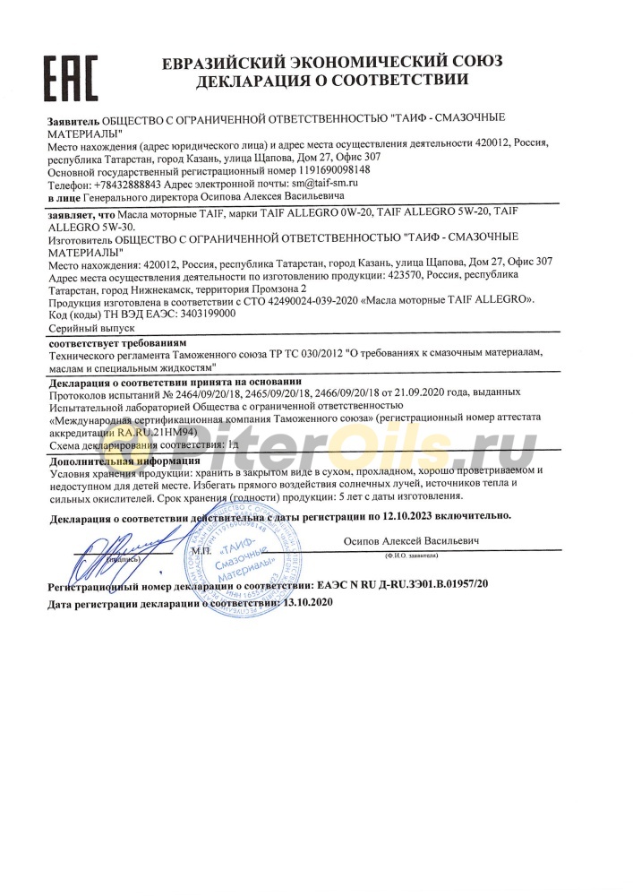 TAIF ALLEGRO 5W-30 (4л) 211010/211166