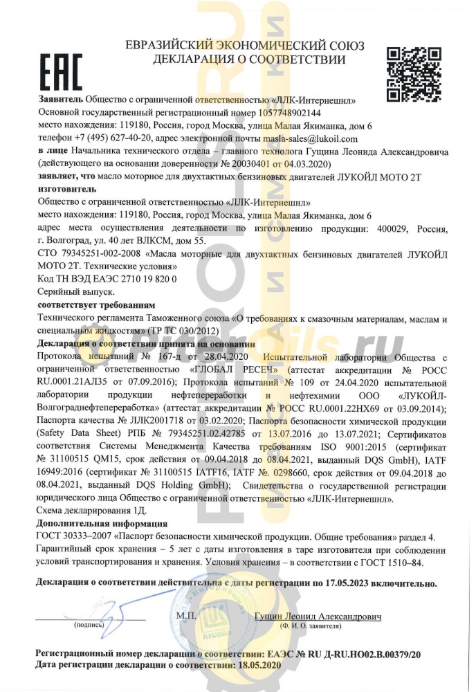 ЛУКОЙЛ МОТО 2Т рекомендуется к применению в