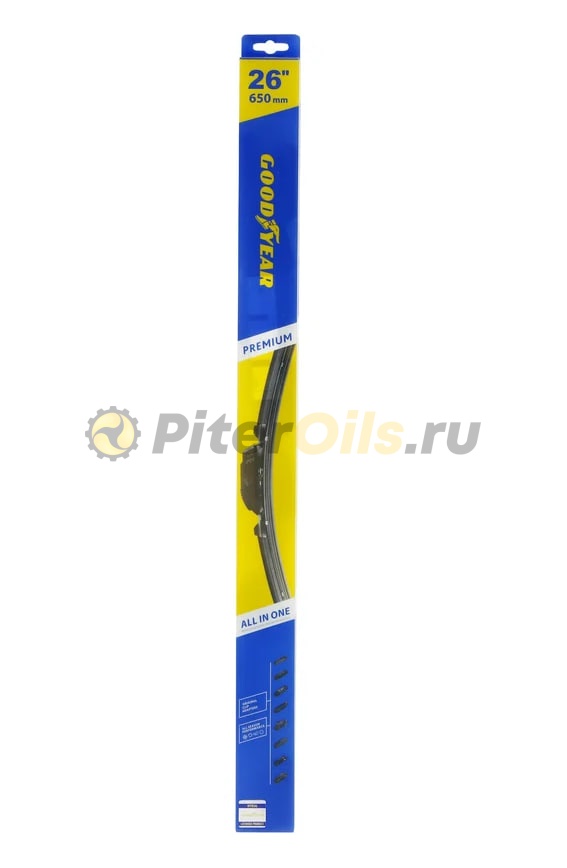 Бескаркасная щетка стеклоочистителя Goodyear PREMIUM 26"/65 cm всесезонная, 9 переходников GY000446