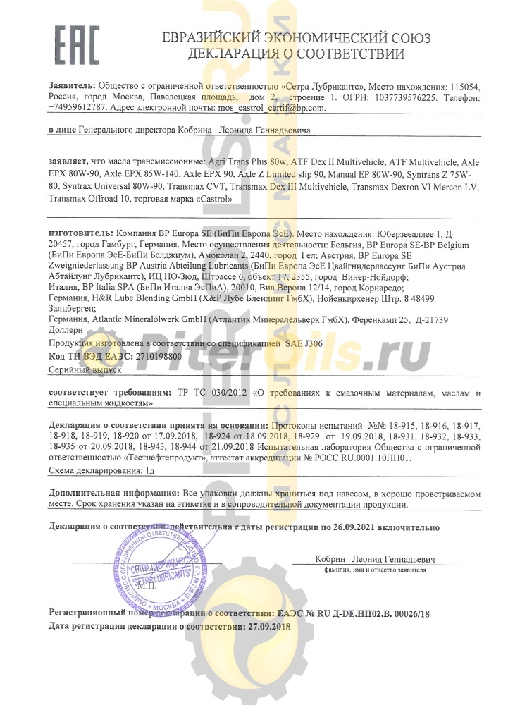 Масло для вариаторов