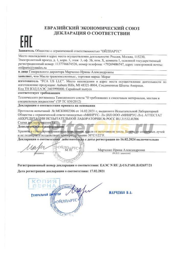 Свойства Mopar ATF+4: