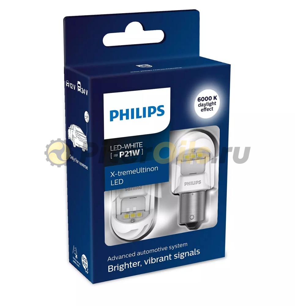 11498XUWX2 PHILIPS Лампа севтодиодная X-tremeUltinon LED white P21W 2.7W 12/24V BA15S 6000K X2