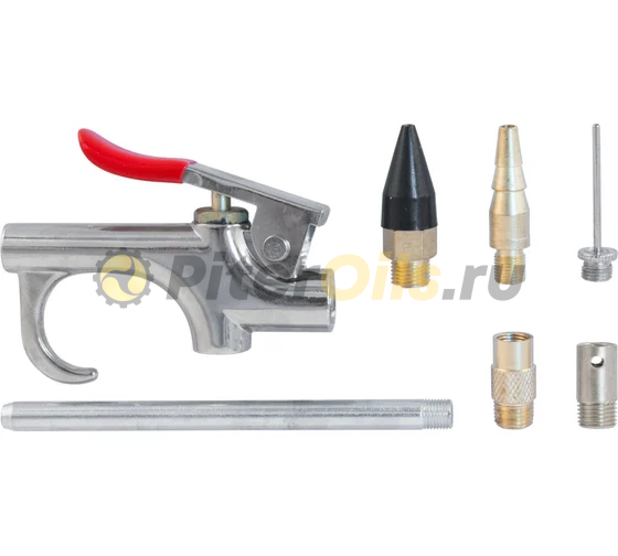 Продувочный пистолет с насадками в наборе Thorvik ABGK7 7 предметов 52646 используется для продувки малых отверстий и больших поверхностей.